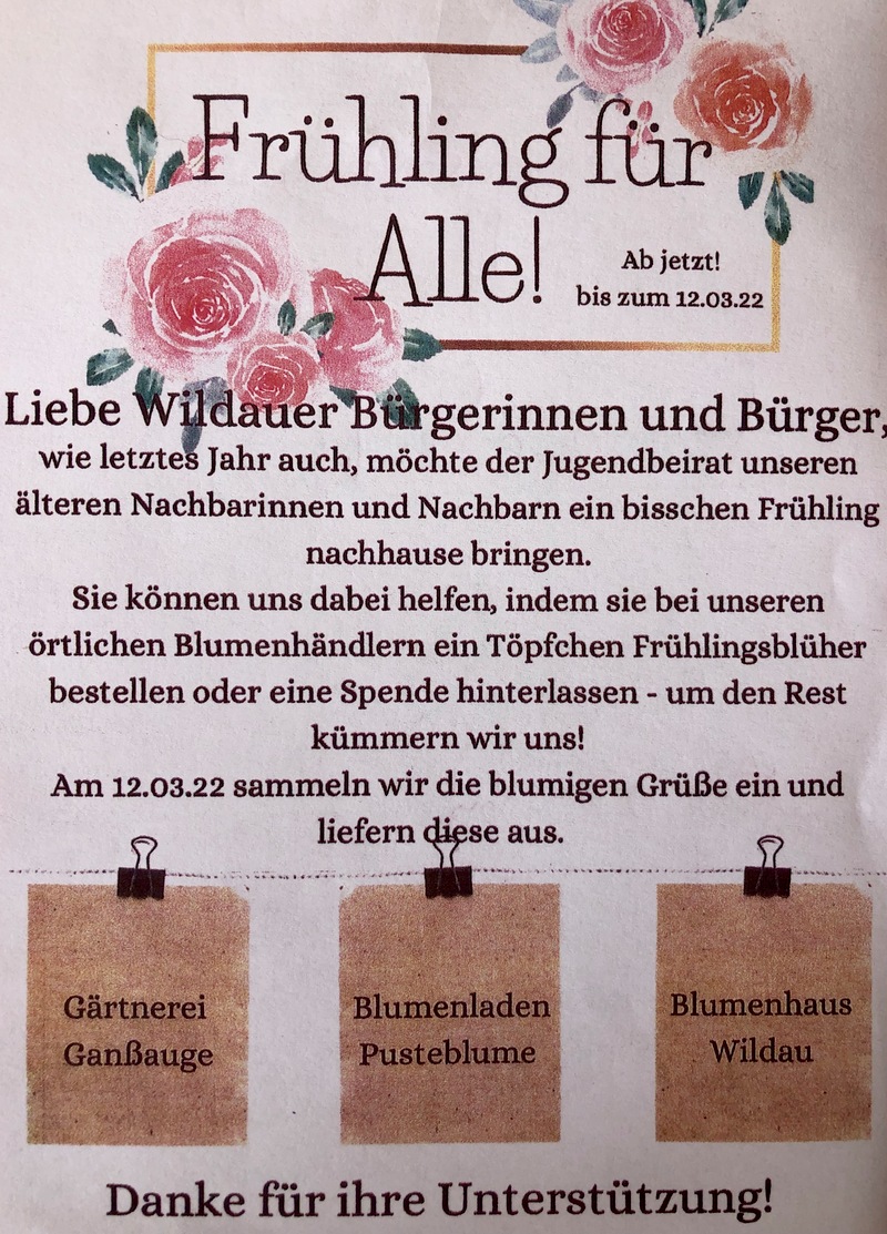 Die Frühjahrspflanzenbörse 2021 wurde aufgrund der aktuellen Pandemieentwicklung abgesagt. Stattdessen wird ein Schwarzes Brett online angeboten.