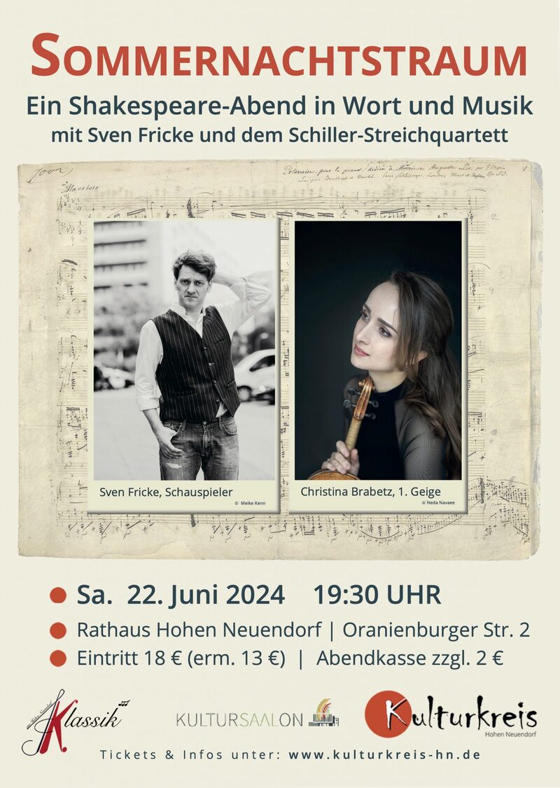 Am 13. Dezember 2025 um 20 Uhr laden die Kammermusikfreunde Birkenwerder in den Salon der Villa Weigert zu einem besonderen Konzert ein. Preisträger des Wettbewerbs „Young Ludwig“ präsentieren ein vielseitiges Programm mit Werken von Mozart, Beethoven, Tschaikowski, Hubay, Szymanowski und Bacewicz.