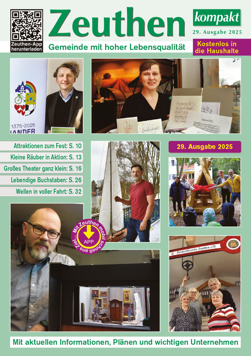 Die 25. Ausgabe von „Zeuthen kompakt“ ist erschienen und wird in die Haushalte kostenlos verteilt. Viel Spaß damit. Bei Fragen, Anregungen und Kritik stehen wir jederzeit zur Verfügung.